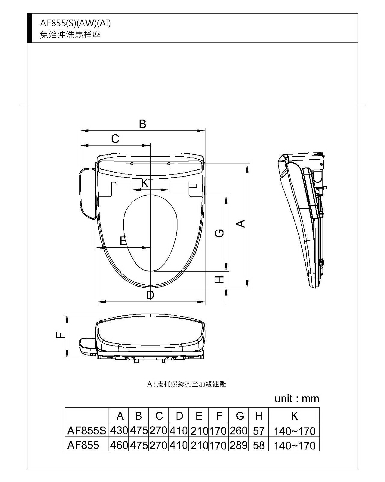 ※AF855S舊款ALPS系列馬桶專用