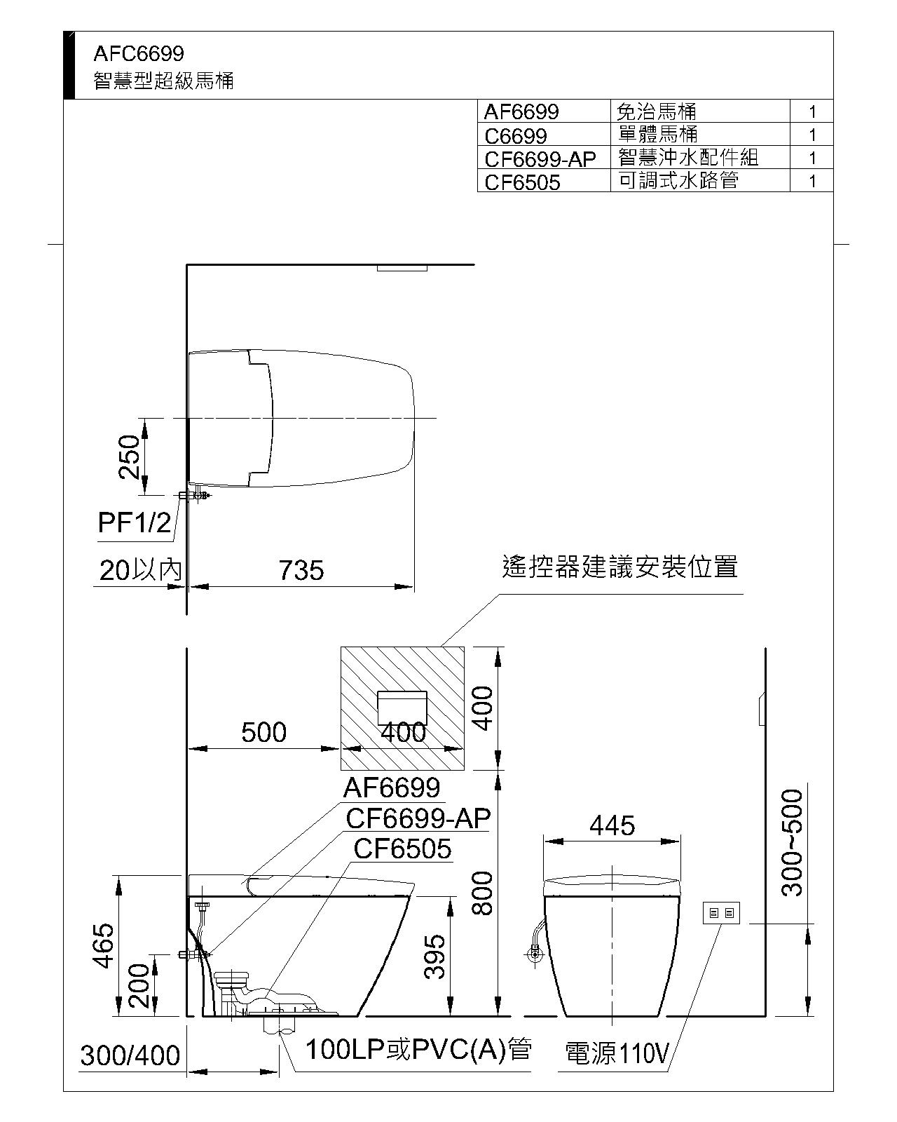 自動掀蓋 管距180mm:CF6518