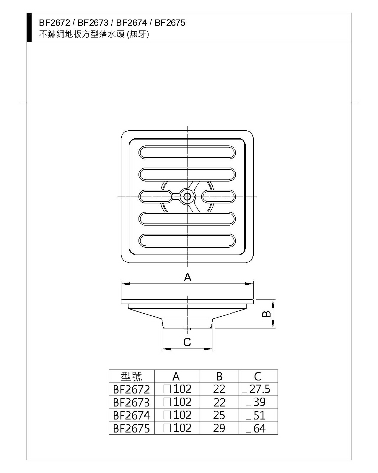 BF2672(1")BF2673(1 1/2")BF2674(2")BF2675(2 1/2")