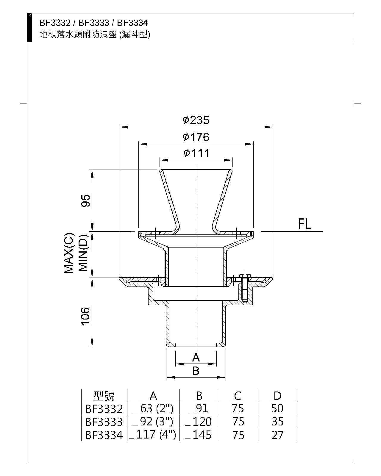 BF3332(2")BF3333(3")BF3334(4")