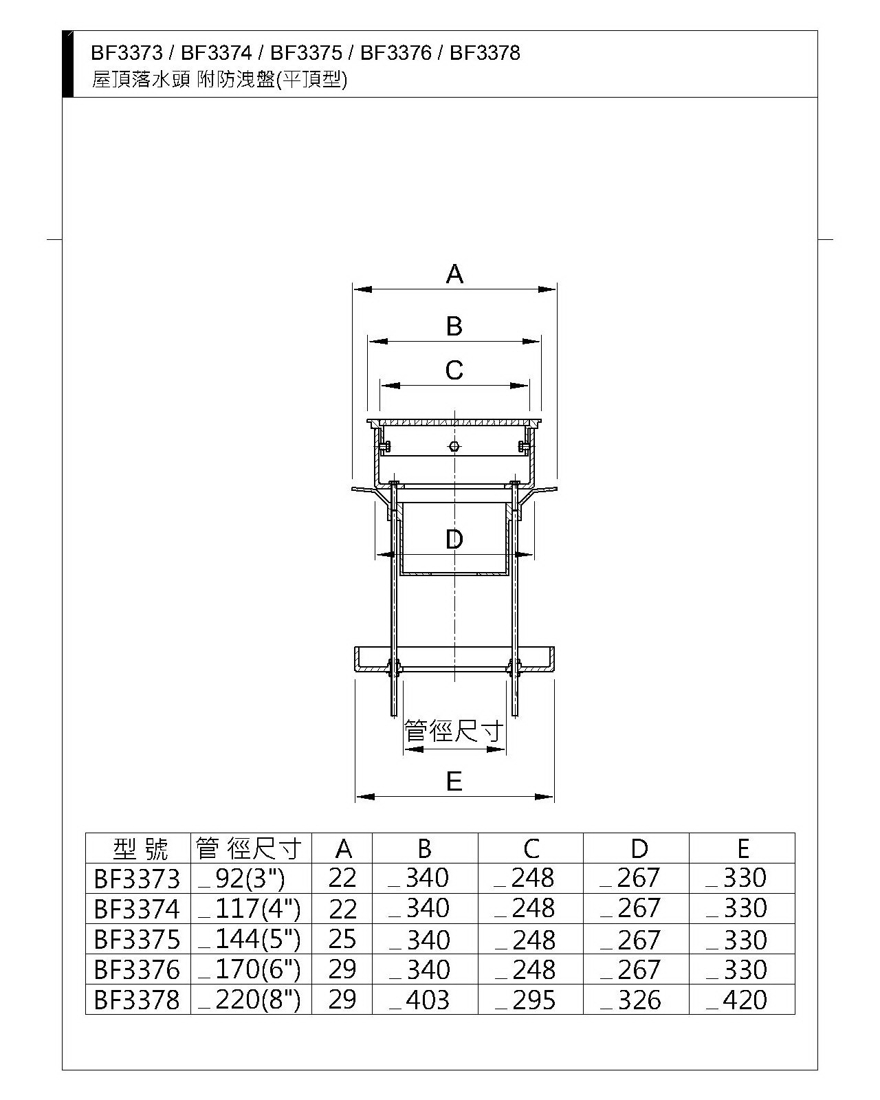 BF3374(4")BF3375(5")BF3376(6")BF3378(8")