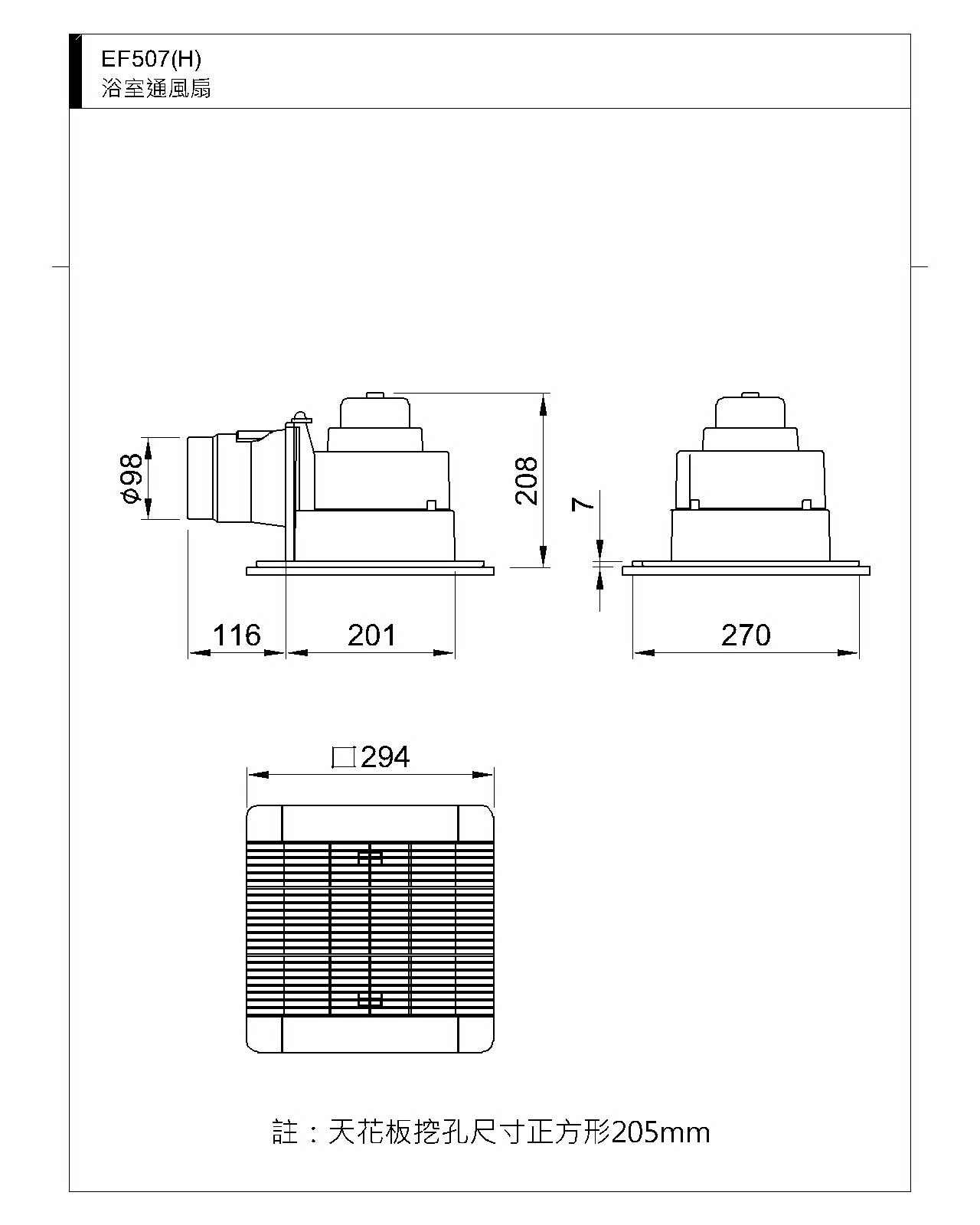 EF508上方排風 AC110V / (H)220V