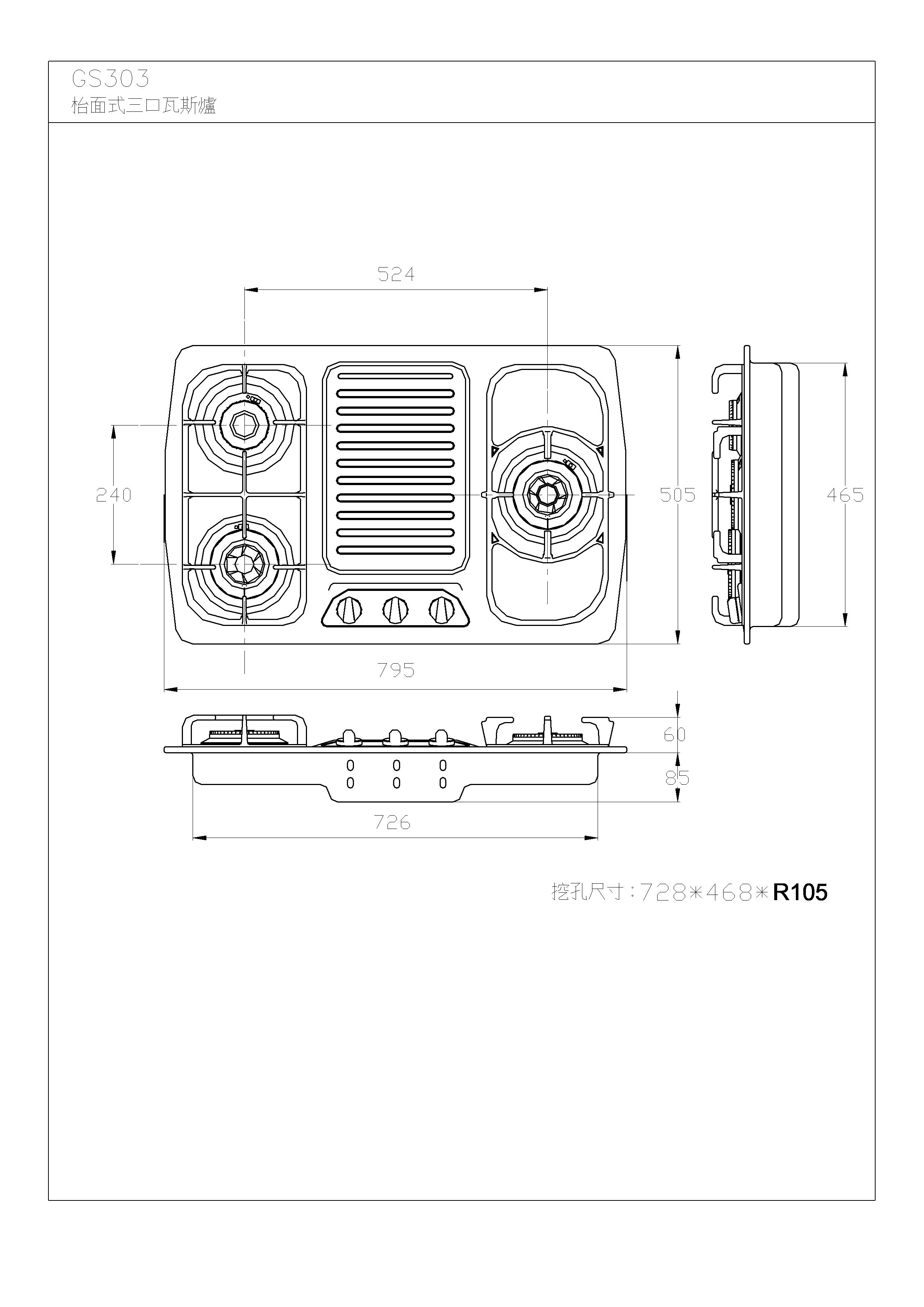 三口不鏽鋼檯面爐