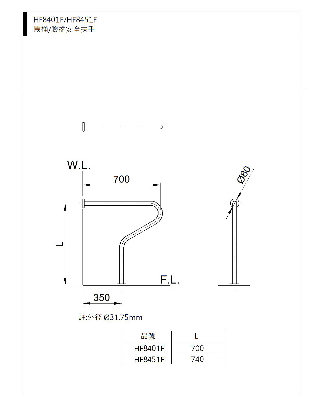 臉盆安全扶手HF8451F / NT$ 5,700