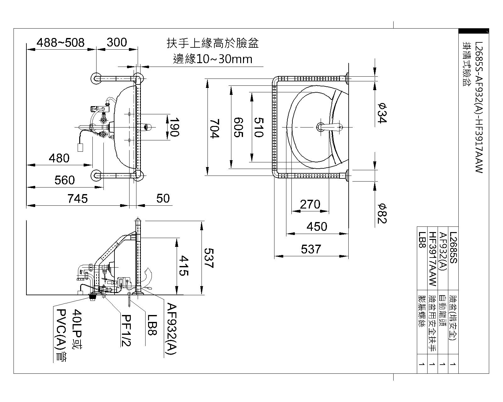 掛牆式臉盆(增安全)