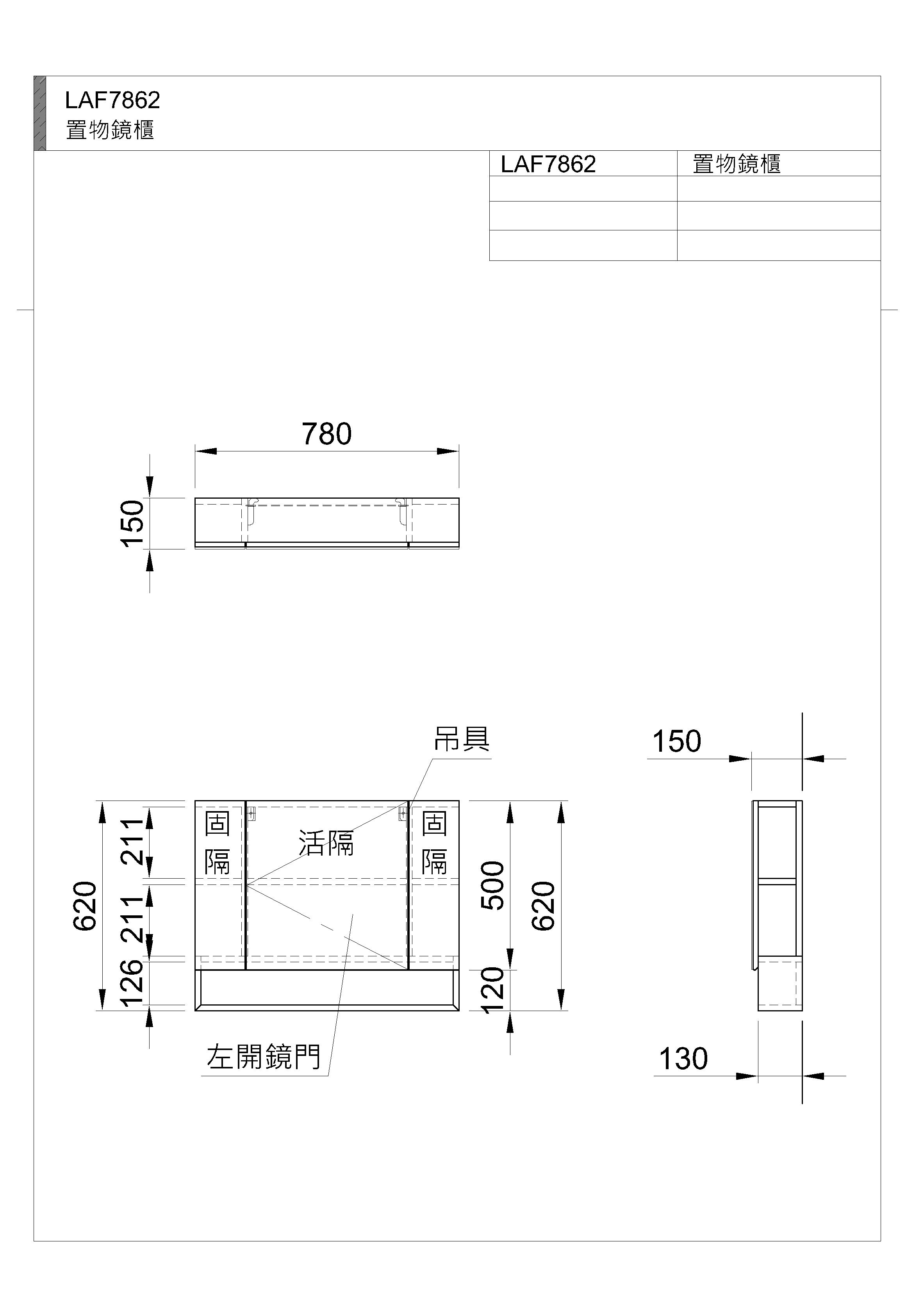 W780xD150xH620mm