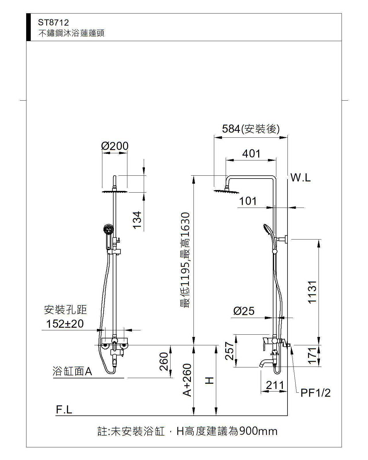 1630xΦ200x584mm