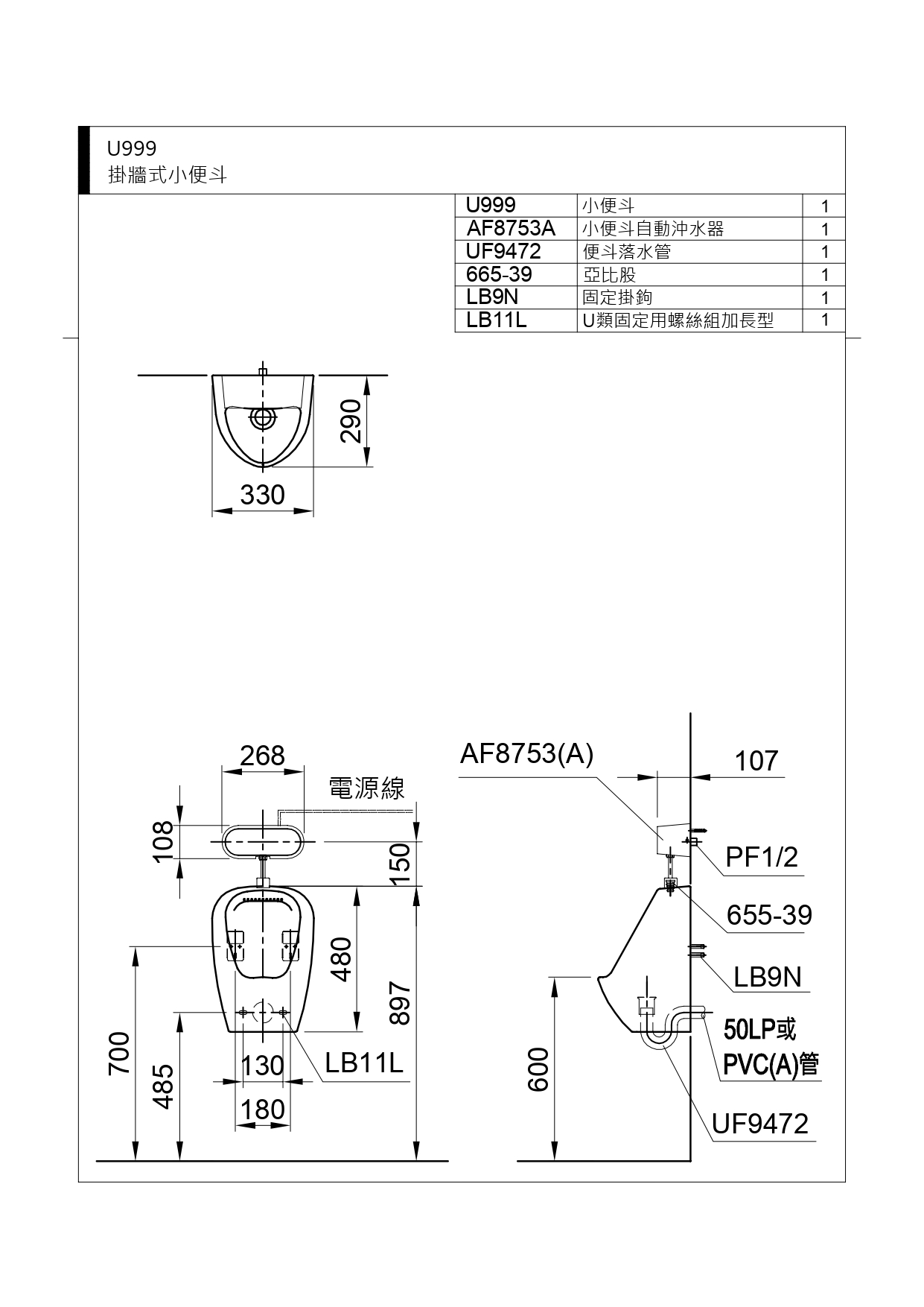 U999小便斗 NT$6,900