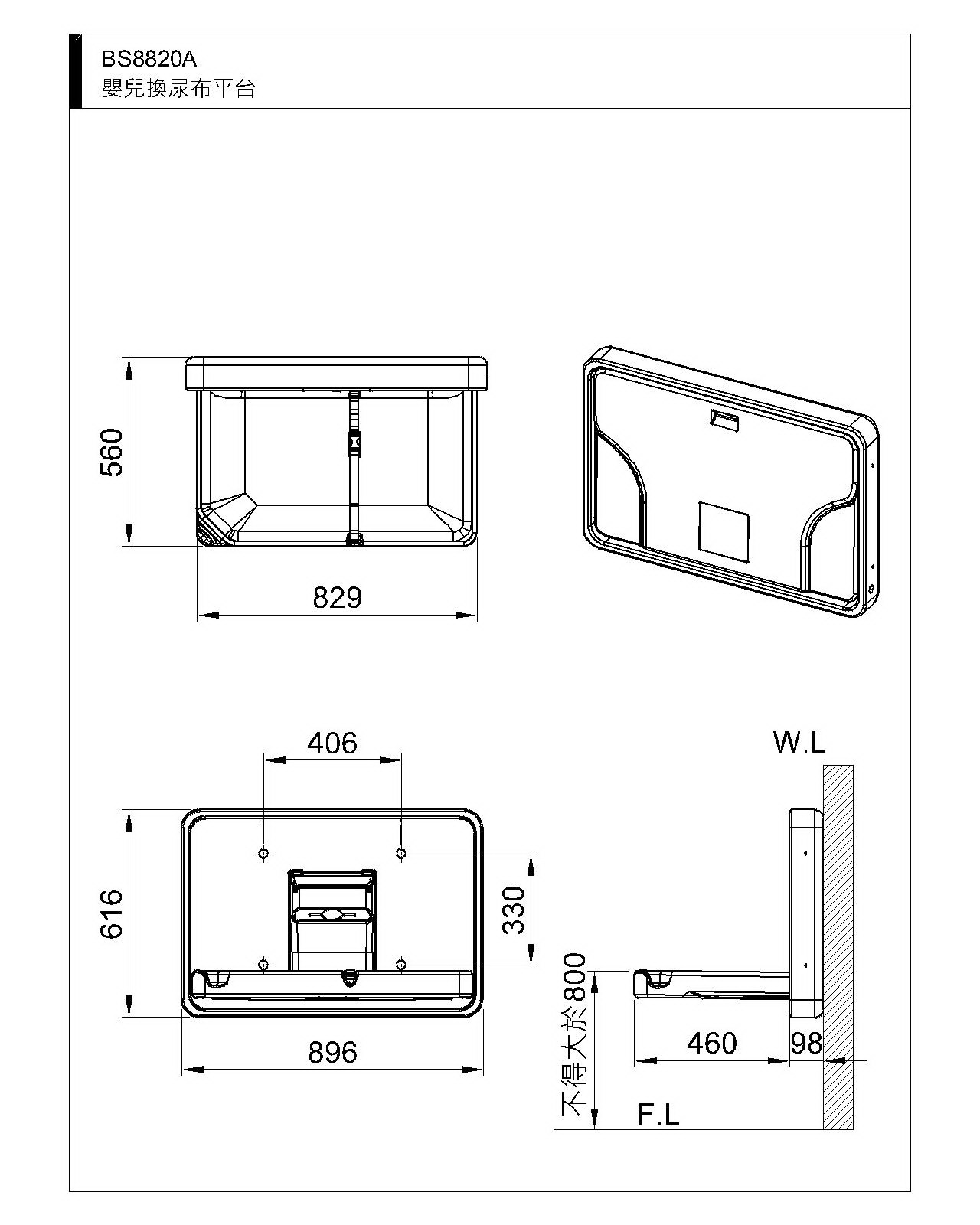 開啟時尺寸│W896 × D616 × H560mm