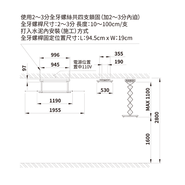 曬衣桿│W1190 ~ 1955mm