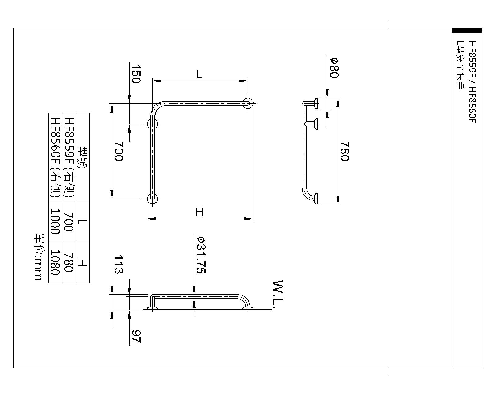 L型安全扶手HF8560F(W700xH1000mm) NT$ 8,200