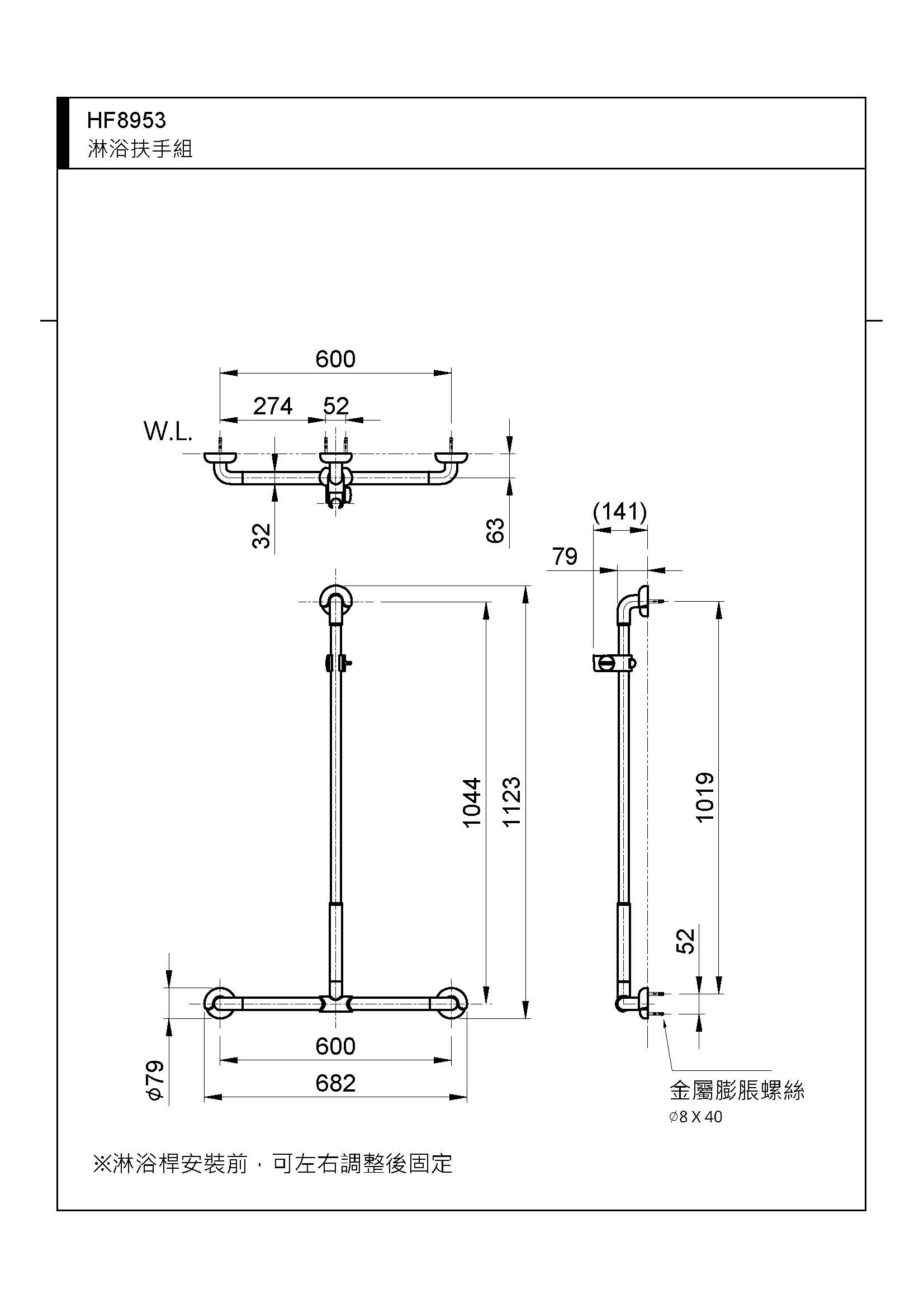 調整式設計可依需求安裝,定位中央滑桿 (附滑桿夾頭)