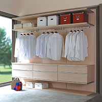 系統櫃推薦HCG和成,櫃體採用E1級V313防潮塑合板,板材抗彎強度高且不易變形。您可自由設計理想衣櫃,靈活配搭衣櫃框、滑門和抽屜配件。提供多種顏色、材質及風格選擇,以滿足您的需求。