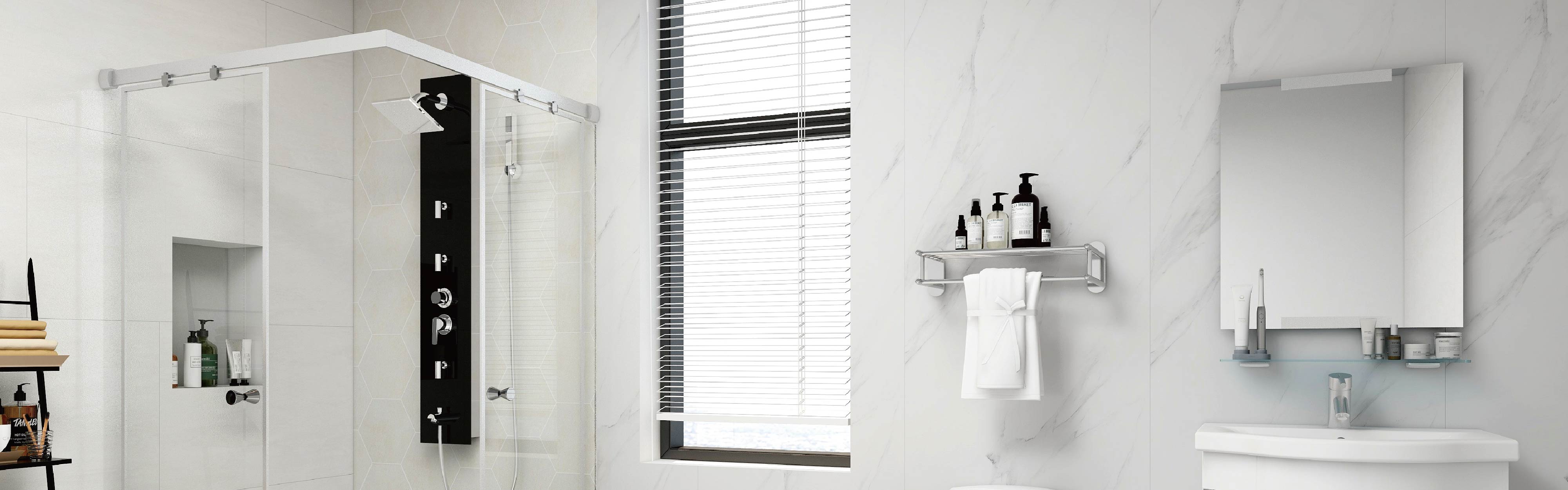 浴室乾溼分離拉門推薦HCG和成,提供無框型、有框型及簡框型等多種選擇。產品具備內外共用置物架設計專利,採用強化玻璃並加裝防爆膜,有效防止玻璃破裂四射,降低受傷風險,保障使用安全。